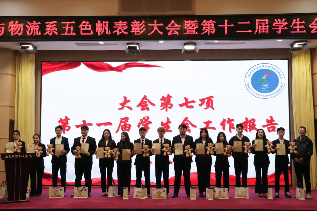 “五色帆”是系部特色思想政治教育品牌,以红色热情、橙色青春、绿色服务、紫色梦想、蓝色志愿为核心,涵盖党团建设、网络思政、人文素质、创新创业、志愿服务五大领域,已入选山东省优秀学生工作案例和省级立项课题。此次“五色帆·卓越人”颁奖典礼暨学生会换届仪式,既是对系部优秀学子的集中表彰,更是系部精神传承与学生组织发展的重要见证。此活动进一步凝聚了师生力量,激励着全体物流学子以更加昂扬的姿态奋勇前行,让“五色帆”精神在代代青春接力中持续闪耀光芒。