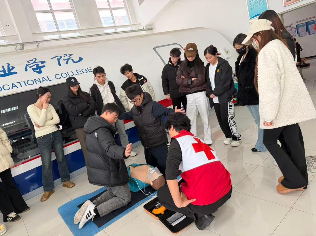 为深入贯彻落实国家职业教育改革部署,进一步提升空中乘务专业人才培养质量,近日,我院空中乘务专业在《民航客舱救护》课程教学中,创新引入中国红十字会CPR(心肺复苏术)与AED(自动体外除颤器)培训考核体系,通“课程学习+技能认证”融合模式,实现教学内容与职业标准精准对接,为学生职业发展夯实技能基础,标志着该专业课证融通改革取得实质性进展。