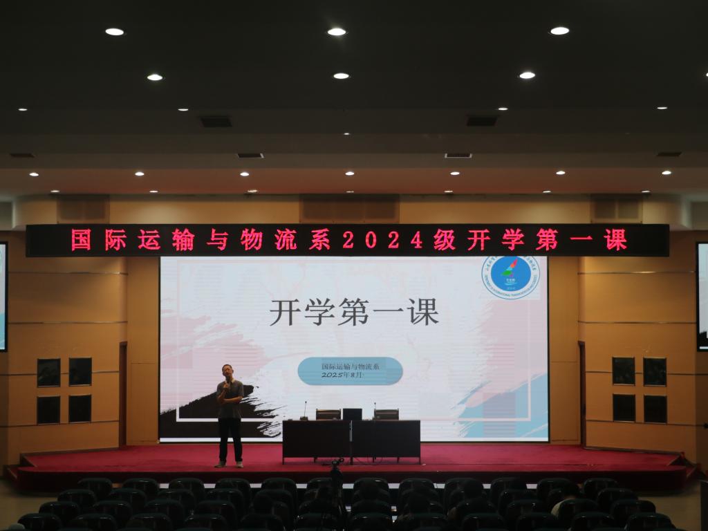 2025年8月26日下午,国际运输与物流系2024级开学第一课在学校学术报告厅举行。系党总支书记肖长征担任主讲,2024级全体学生参与。肖书记围绕“专业进阶中的思政底色”展开,结合国际物流行业的实际需求与国家物流枢纽建设的战略布局,既指导学生明确专业核心课的学习重点、实践方向,更融入思政内容:强调“专业能力是基础,家国情怀是方向”,鼓励学生在报关实务、供应链管理等学习中,关注行业的国家战略价值,以专业本领践行青年责任。